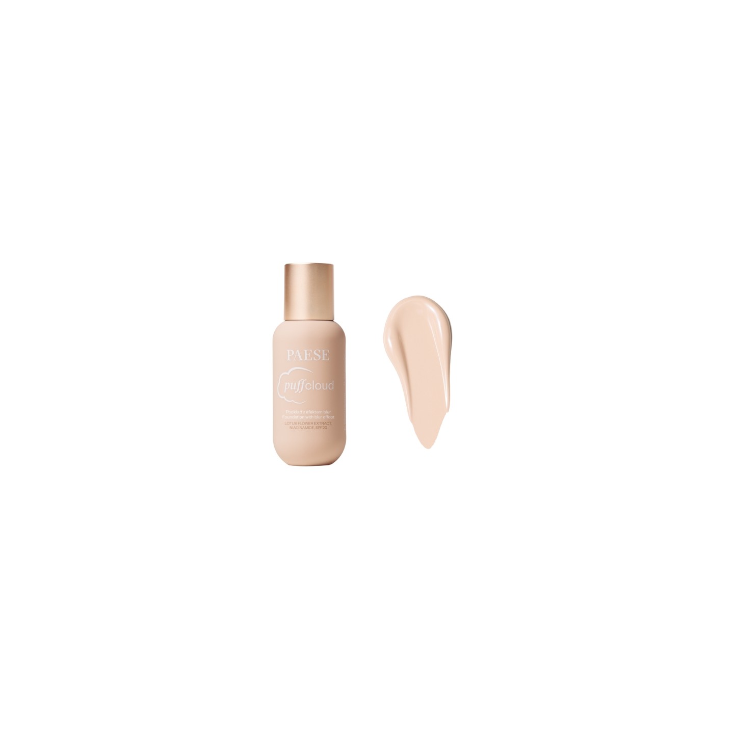 Leichte Foundation mit blur -Effekt, Satin-Finish, mittlerer/aufbaubarer Deckkraft, Niacinamid, Lotus-Extrakt, SPF 20.