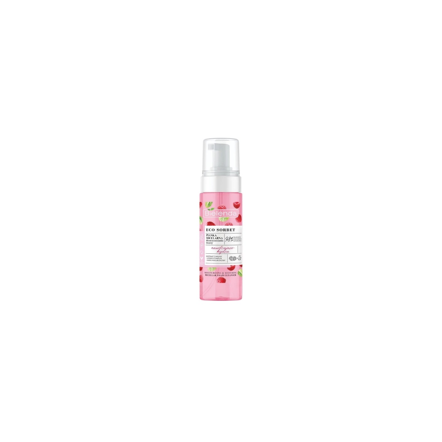 Bielenda ECO SORBET Hydraterende en verzachtende micellaire gezichtsreinigingsschuim Framboos 150 ml