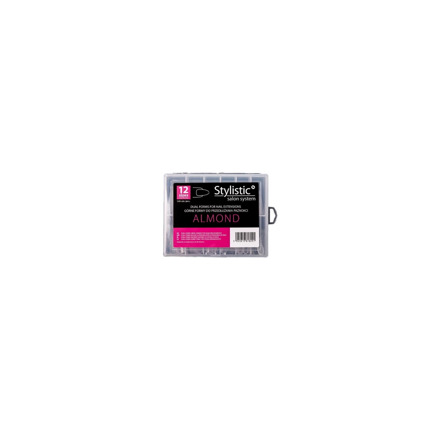 De transparante Dual Form-vormen van Stylistic zijn een handig alternatief voor traditionele nagelverlengingsvormen. Ze maken het opbouwen van nagels veel sneller en het eindresultaat preciezer en consistenter. Met de vormen creëer je eenvoudig de perfecte basis voor je ontwerp, zodat alle nagels dezelfde vorm en verhoudingen hebben. De vormen zijn gemaakt van flexibel en ego materiaal en zijn bestand tegen beschadiging tijdens het aanbrengen en verwijderen. Het transparante ontwerp laat UV/ LED licht gemakkelijk door, wat zorgt voor een gelijkmatige en effectieve uitharding van het bouwmateriaal. Dual Forms si perfect aan de natuurlijke nagelplaat aan. Elk type vorm is verkrijgbaar in vier maten, waardoor een perfecte breedteaanpassing aan de nagel mogelijk is en het draagcomfort wordt verhoogd. Het product is verkrijgbaar in drie populaire stylingvormen: amandel, ballerina en square , zodat je de vorm kunt aanpassen aan je gewenste manicure .